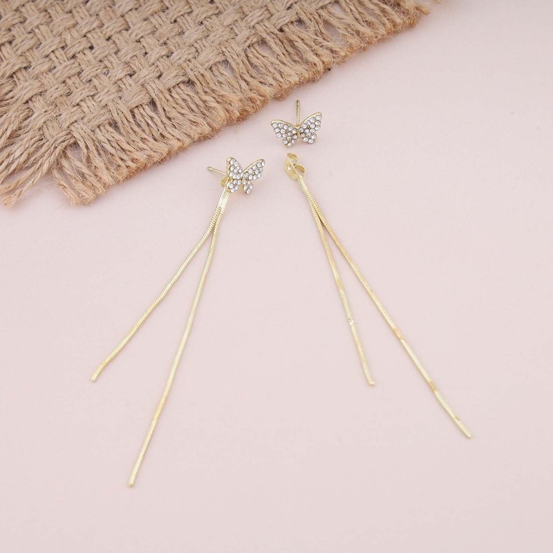 - Boho butterfly cz dangle earrings.Product Details:Handmade.Dimensions:as shown in the picture.Color:Gold.Material:high quality alloy.Location:Ear.Style:Boho.There will be slight errors due to manual measurement.Due to the shooting environment,there will be slight color difference.