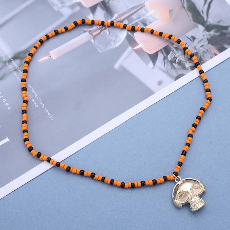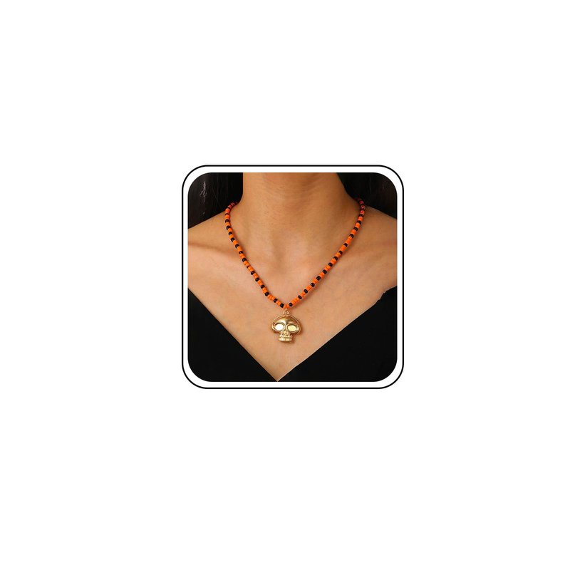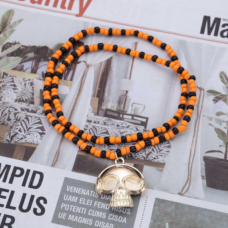 TseanYi Hallween Skull Pendant Necklace Skull Head Necklace Colorful Beaded Choker Necklace Gothic Gold Skeleton Pendant Necklace Seed Bead Chain Necklace Skull Face Charm Necklace