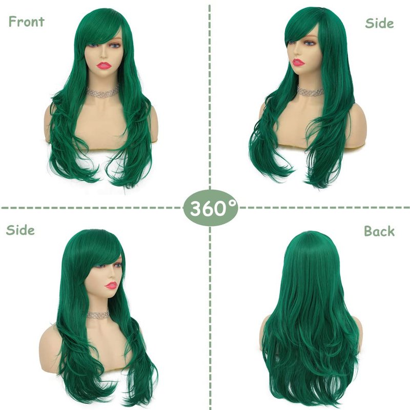 - ❤【Premium Synthetic Wig】:Long curly green strips wig is made of high quality heat resistant synthetic fiber which is very soft and silky, can be straight & curled. It is the most natural and authentic design .