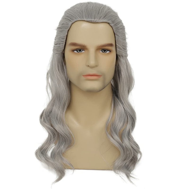 Hair Style: Grey Long Curly Wigs for Men. About this wig: Top Quality Heat Resistant Synthetic Fiber
