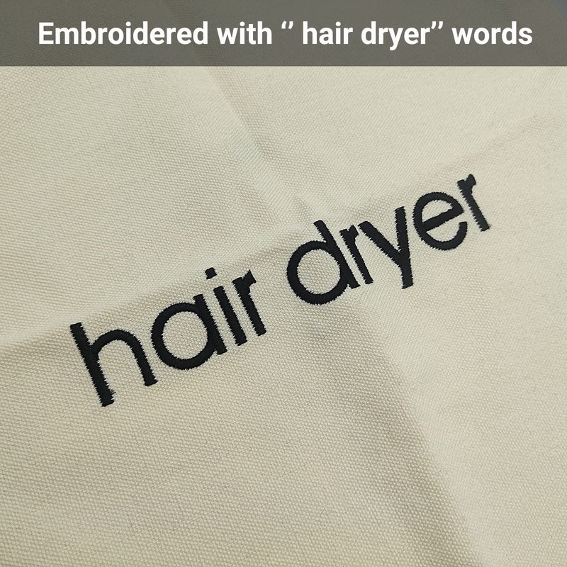 - The hair dryer bag is made with cotton material and embroidered words make the bag look luxury