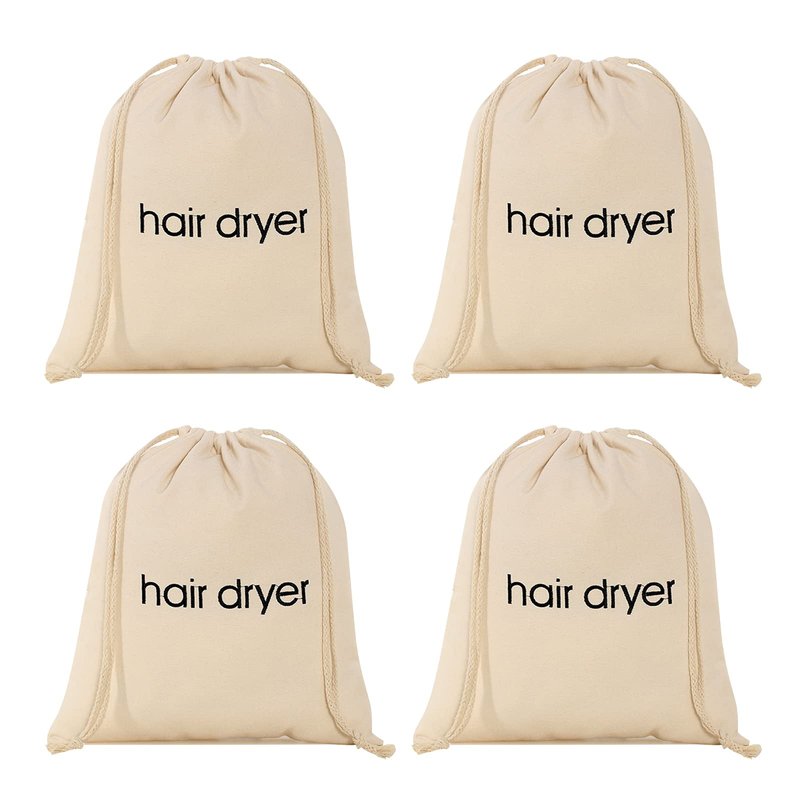 TSHD Hair Dryer Bags Drawstring Bag Container Hairdryer Bag Cotton Travel Storage (4 PCS White)