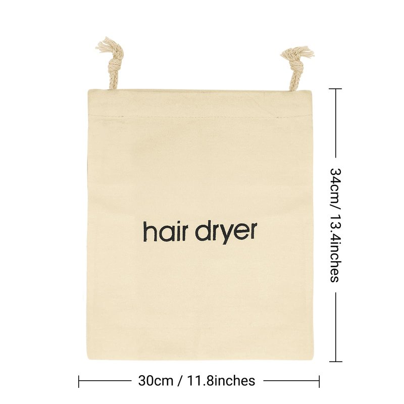 The cotton drawstring bag is embroidered with "hair dryer" words, looks delicate and beautiful, it helps the guests easily find the hair dryer.