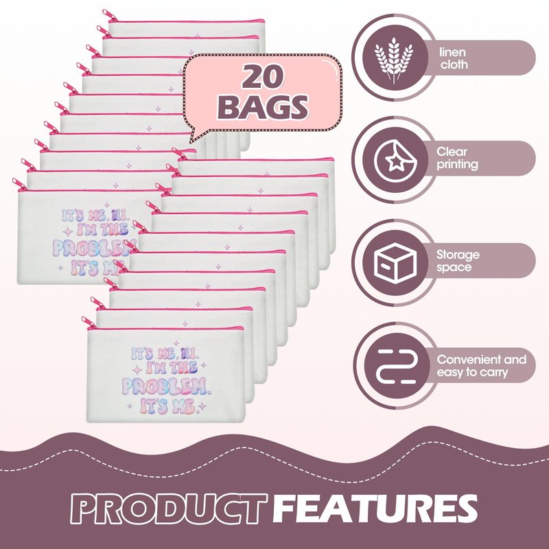 This pack includes 20 high-quality, waterproof linen polyester bags, a fan-favorite design to showcase your support for the world's greatest artist. Measuring 7" x 4.3", these spacious bags are perfect for storing cosmetics, money, keys, cards, pencils, and more.