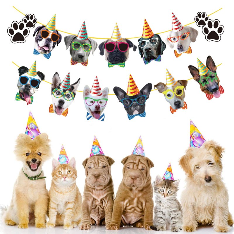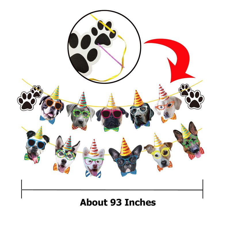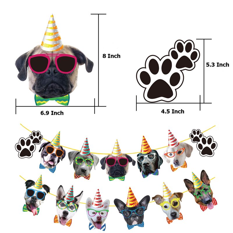 - PACKAGR INCLUDED - This dog birthday banner is included 11 pieces dog faces and 2 dog claws, each face is individually inspected then carefully packaged by hand, and each card measures is about 7.9 x 6.7 inches, appropriate size for dog theme party.
