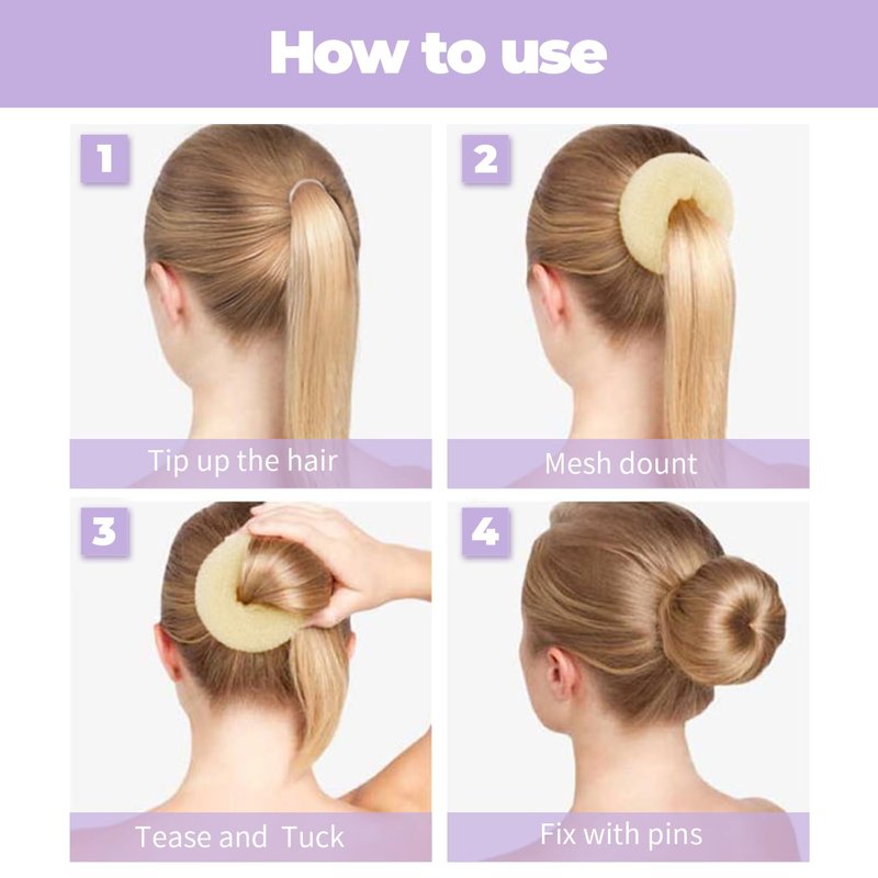 - Quick and Easy to Use: Loop your hair through the hole and spread your hair evenly around to cover the donut, then secure with 4-5 bobby pins, a few seconds for a new hair style.
