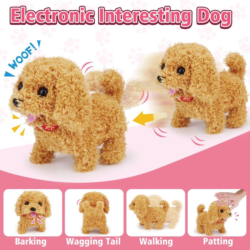 - 【Puppy Toys for Kids】Open the switch and the cute stuffed dog will walk, bark, wag its tail and nod its head just like a real dog. When you pat the dog’s head, it will also make sound, very cute and funny. Kids can learn to take care of their dogs, pretend to check and treat the toy puppy, experience a variety of pet activities such as feeding, washing, grooming and clipping. Great interactive toys for 2 3 4 5 6 year old girl birthday gifts.