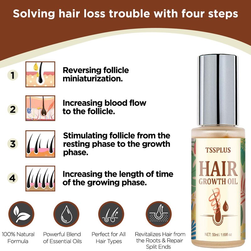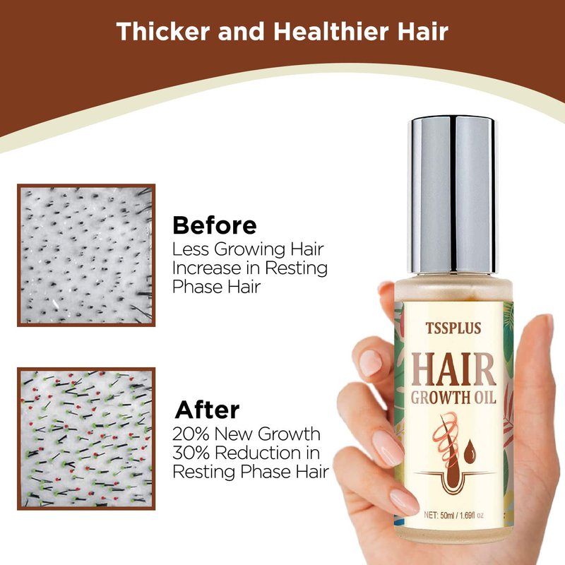 Helps repair damaged hair surfaces, Hair Growth Oil can relieve hair thinning and reduce hair loss, making hair grow fuller and thicker