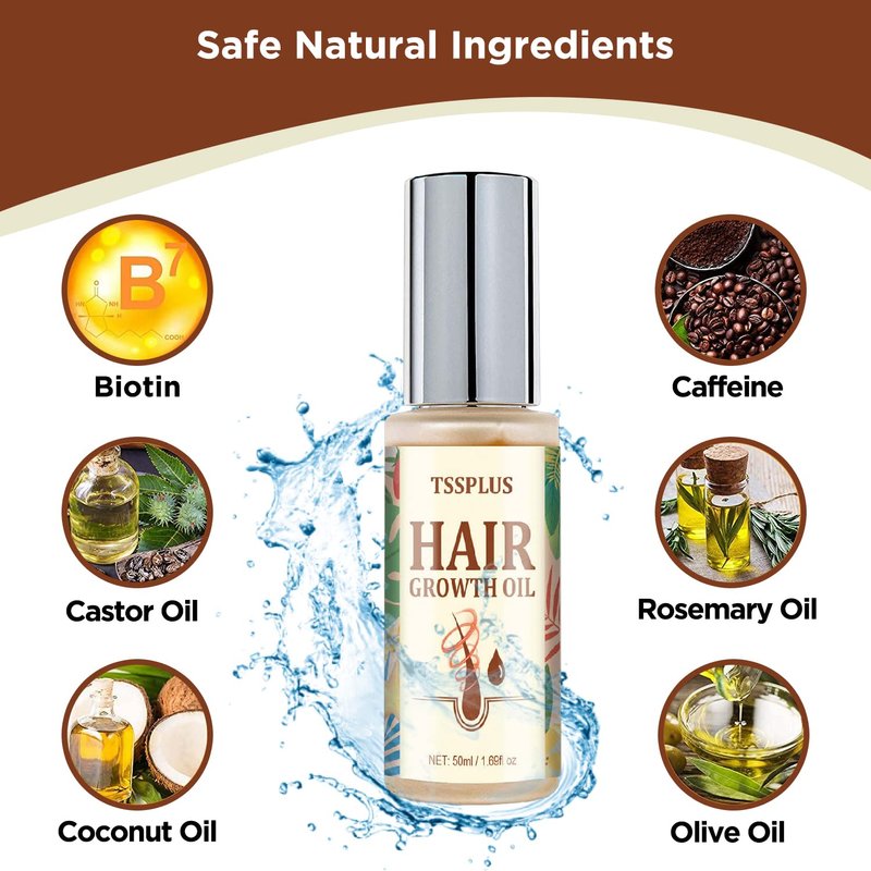 TSSPLUS Hair Growth Serum and Oil - Hair Loss Treatment for Dry, Damaged Hair with Biotin, Castor, and Rosemary Oils for Thicker, Healthier Growth