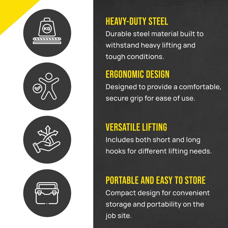 T&T Tools Lid Sling Hook - Lift Manhole Covers & Storm Drain Cover, Versatile Lifting Hooks, Rigid Steel Tool Hook for Moving (Short & Long)