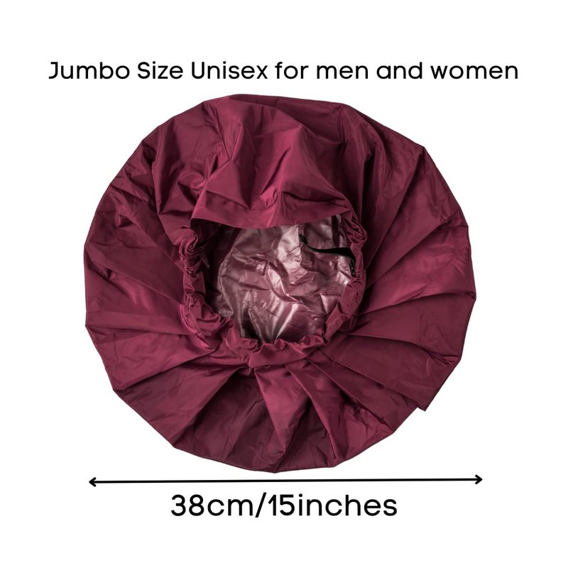 TTAT Shower Cap Jumbo Size for Men & Women With Afro, Long Dreadlocks, Locs, Box Braids, Coily, Voluminous & Long Hair, Waterproof, Washable, Reusable & Adjustable (Maroon)