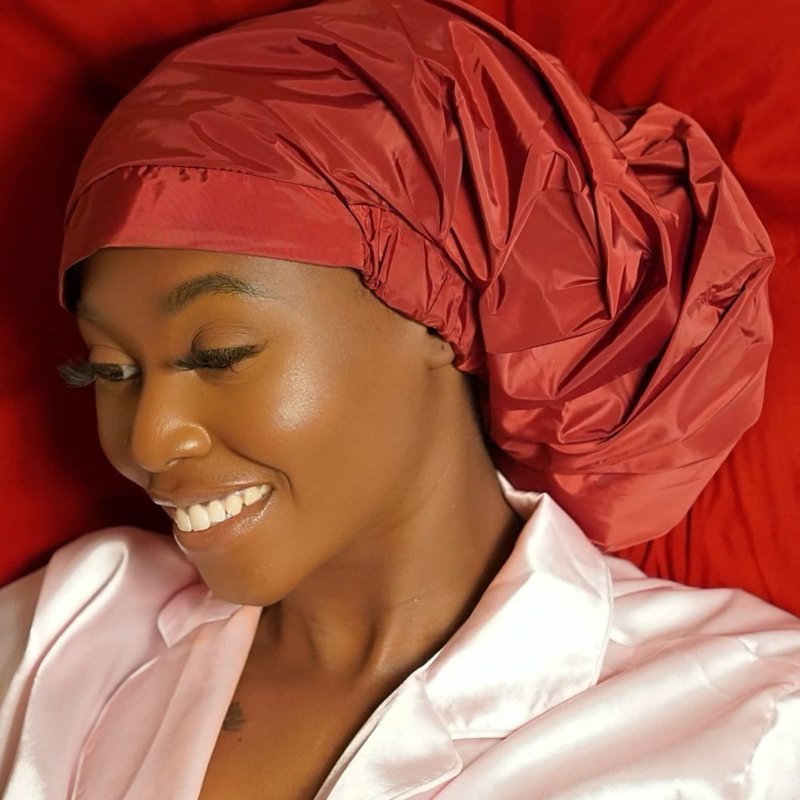 Then tuck all your beautiful hair inside the shower cap and away from the edges.