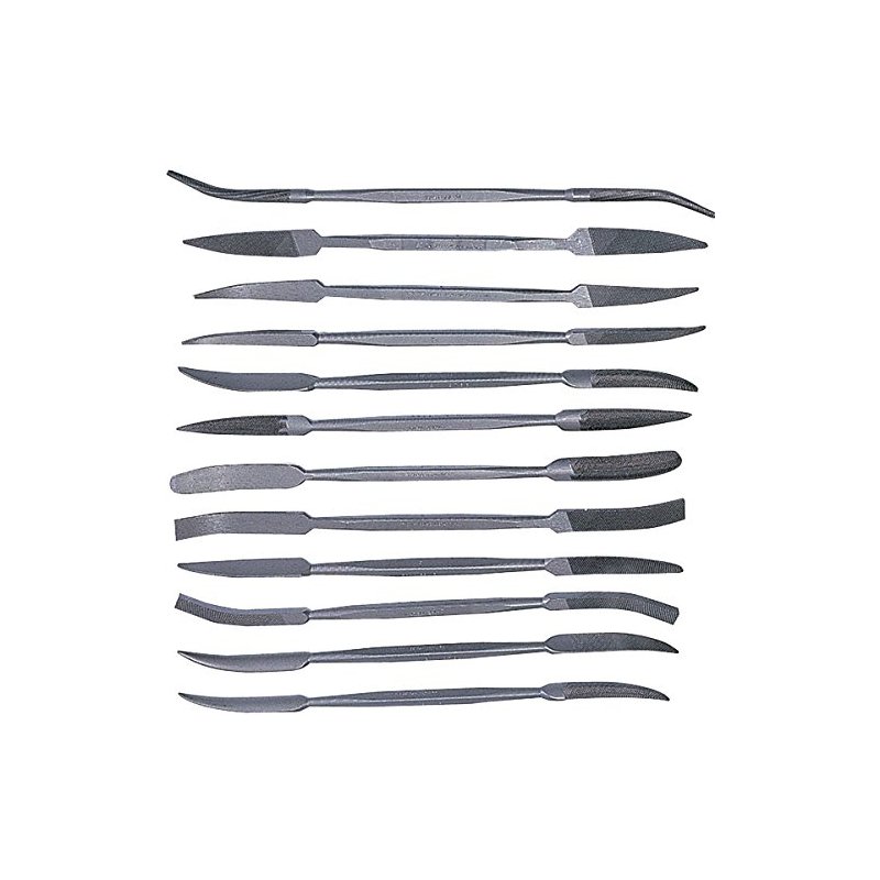 FEATURES Various sectional shapes. Teeth are cut on a small area of each end leaving a long middle portion as a handle. TTC 12 Pc Cut #2 Diemakers Riffler File Set-6-3/4" OAL