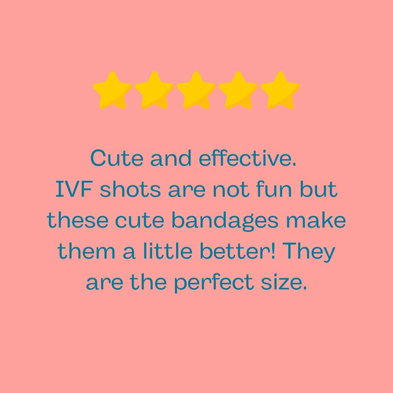- IVF bandaid designs feature pineapple bandaids, rainbows, and words of inspiration for those TTC