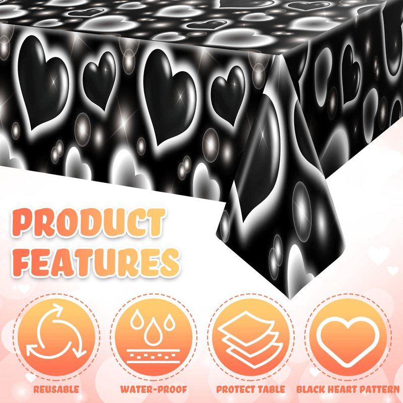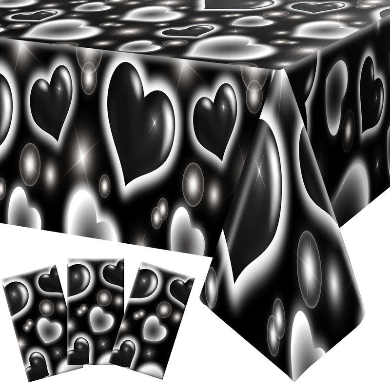 Tudomro 3 Pack 2000s Tablecloth Decoration Cholo Party Table Cover 90s Table Covers Heart Early Plastic Disposable Rectangle Table Decoration for Birthday Party Supplies, 54 x 108 Inches(Black)