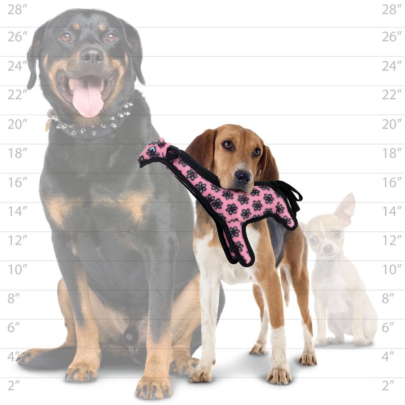 TUFFY - World's Tuffest Soft Dog Toy - Zoo Giraffe - Squeaker - Multiple Layers. Made Durable, Strong & Tough. Interactive Play (Tug, Toss & Fetch). Machine Washable & Floats. (Junior Pink)