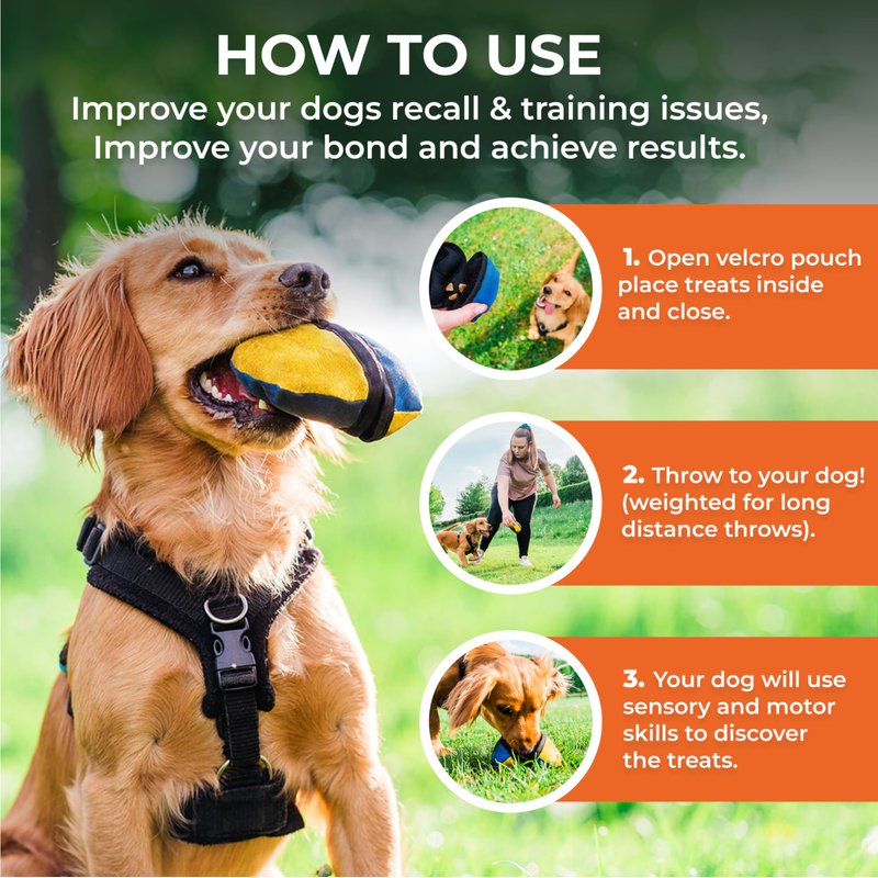 - Bright Colour Options: Our pocket-sized interactive dog treat dispenser comes in bright, vivid colour combinations for your dog to see more clearly even from a distance. It is weighted aptly for throwing and ensures focus during training.