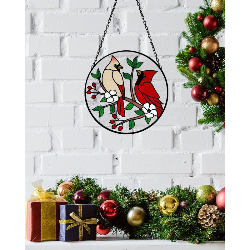 - MULTIPLE APPLICATIONS - Cardinals on a branch stained glass suncatcher will show different colors in different lighting conditions. When the sunlight comes through, it will become more gorgeous and looks colorful. This suncatcher is helpful for your home decoration. Meanwhile, it is also a creative gift for mom, grandma, friends, teachers, classmates, colleagues, bird lovers, etc.