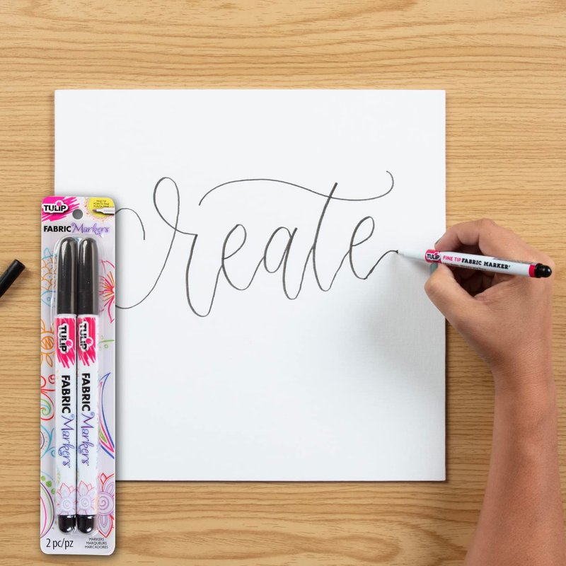 Tulip Permanent Nontoxic Fabric Markers Black 2 Pack-Laundry Markers,Fine Bullet Tip,Child Safe,Minimal Bleed&Fast Drying-Premium Quality for T-shirts,Clothes,Shoes,Bags&Other Fabric Materials
