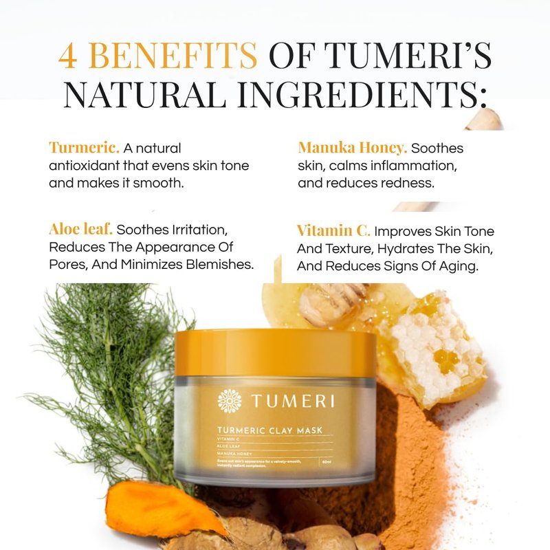- TURMERIC CURCUMIN FOR RADIANT SKIN – Tumeri skin care face mask is made with Turmeric oil. This facial moisturizer mask possesses the natural cleansing and skin softening benefits of turmeric oil for face.