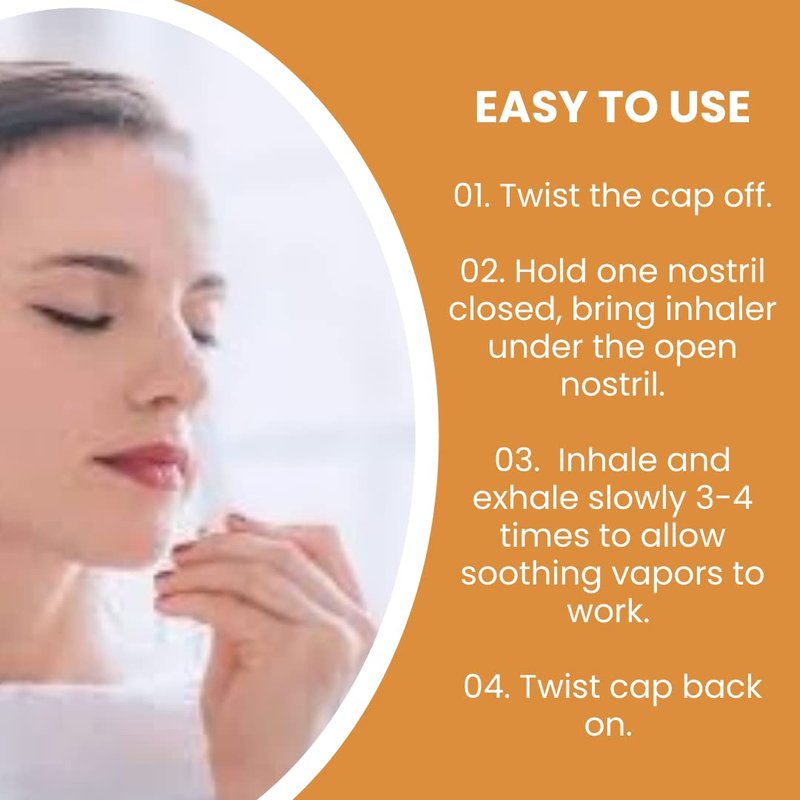 To use, plug one nostril with a finger and place your uncapped Tummy Tamer under the open nasal passage. Inhale deeply 2-4 times from your aromatherapy inhaler. Keep the inhaler capped when not in use to preserve the freshness of your oils!