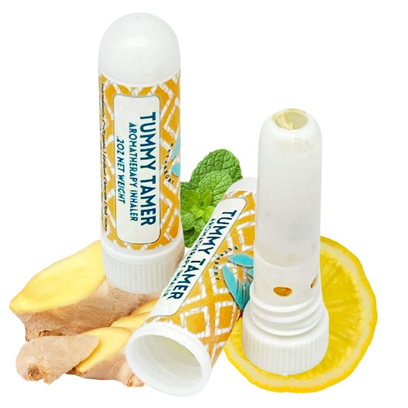 TUMMY TAMER 2PK Nausea Inhaler w/Pink Salt, Menthol, Ginger, Peppermint, Basil & Lemon Oils | Fast Acting Aromatherapy | Motion Morning Sickness | Migraine | Chemo | Stocking Stuffer Gift