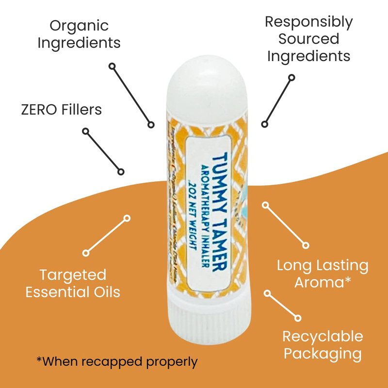- HIGHLY PORTABLE: The small size of Stripped’s Tummy Tamer Inhalers makes them highly portable and easy to bring with you everywhere you go. About the size of a Chapstick, our inhalers can fit inside your purse or pocket and offer quick, natural aromatherapy for vertigo, seasickness, and naseous whenever it’s needed.