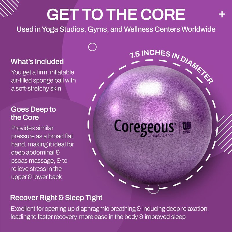 Tune Up Fitness – Coregeous Ball | Psoas Release Tool, Abdominal, Belly & Lower Back Release | Core Ball, Exercise Ball for Low Back, Stress & Digestive Relief, Improved Breathing & Sleep (Iris)