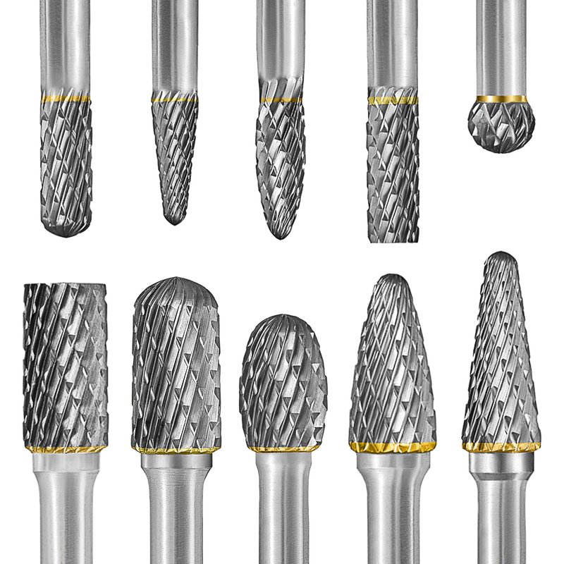 - Tungsten carbide - hardness, high strength, and durability. The service life is 8 times longer than that of HSS tool. Pilim double cut carbide rotary burr set can be used on all types of metals, including stainless steel and hardened steel, as well as wood, jade, marble, and bone.