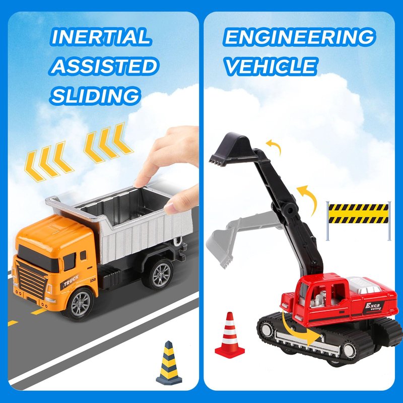- Safe and Durable toys for toddlers: Our toddler construction toys is a toy truck that has gone through strict quality testing. Each toy construction vehicles small part is carefully designed with smooth edges, toy cars for toddlers 3-5.Construction party decorations. The mini construction vehicles material is made of environmentally friendly and non-toxic material, Children experience being construction party, kids excavator toy can provide much joy