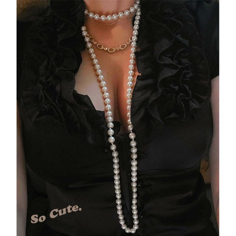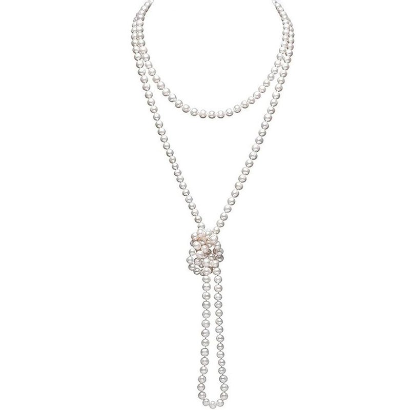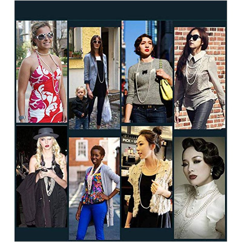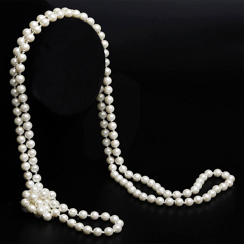 TUOKAY 1920s Pearls Beads Necklace for Women Girls Pearls Strands, Fashion Imitation Faux Pearls Long Necklace Vintage Costume Jewelry Necklace 55 in. Diameter of Pearl 0.32 in. (Ivory)