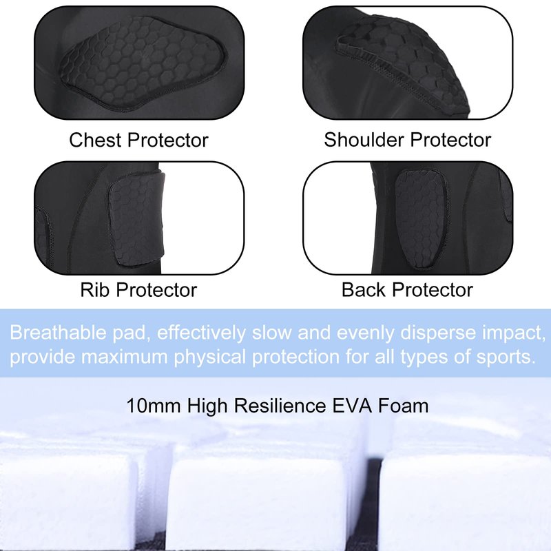 - Areas Of Protection: Ribs, Shoulders, Chest And Collarbones, 6 Pads On Top.Perfect for goalkeeper, football, basketball, rugby, paintball, hockey, baseball and all other contact extreme sports.