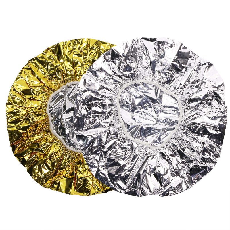 These deep conditioning heat caps are designed for professional hair stylists and home beauty mavens alike. You'll love the new Deep Conditioning and Processing Cap. Great for deep conditioning treatments, coloring, highlighting and perms. The aluminum construction holds in heat, allowing for faster and more effective results from your products. These processing caps are reusable and easy to clean so no more overflowing trashcans or filling landfills.This deep conditioning processing cap is great for coloring, perms and conditioning treatments.The aluminum helps to trap heat, allowing color to process more quickly and treatments to penetrate the hair shaft more effectively.The elastic band stretches for a one size fits all fit. Designed for repeated use. Easy to clean and use again.Get professional results from your hair treatments, coloring, highlights and perms.Package includes:2 x Gold aluminum foil hair heating cap2 x Silver aluminum foil hair heating cap