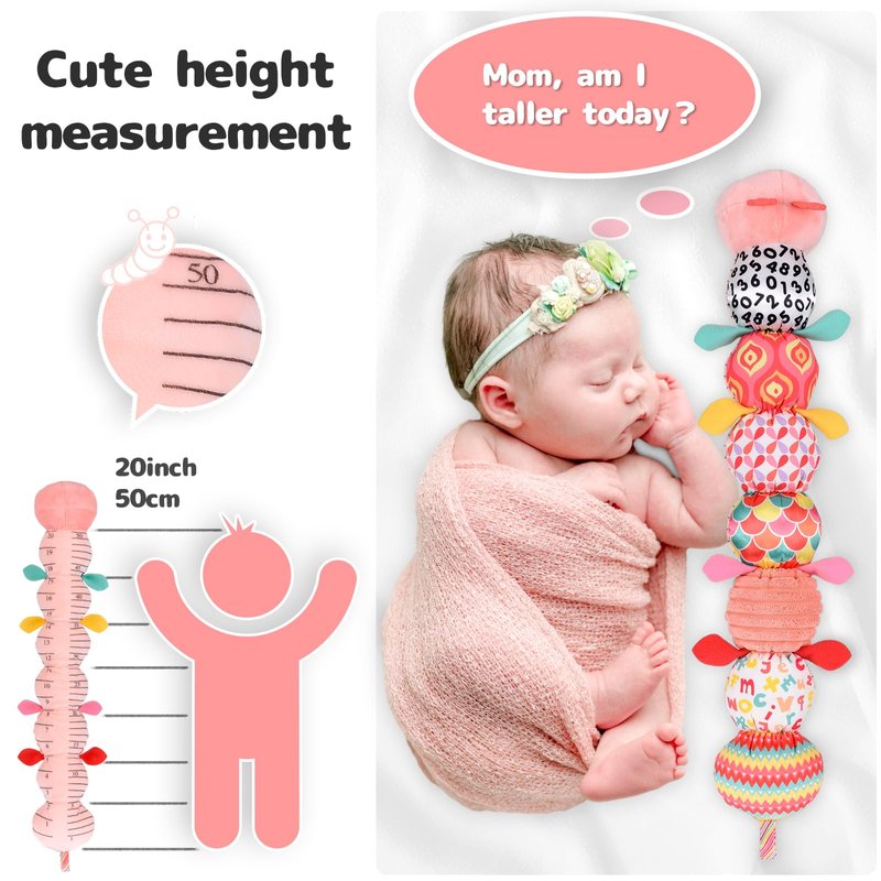 - Recording Baby's Growth - The thoughtful ruler design allows moms to easily measure their baby's height when they are on their tummy. The maximum size is 50cm/20ft. Also the caterpillar toys designed for tummy time are especially ideal for infant during this stage, as they are more likely to gain the trust of young ones at this time.