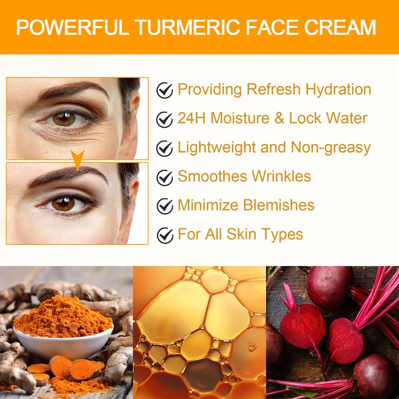 - 【ANTI-AGING & FIRMING FACE CREAM】 - This amazing turmeric moisturizing for face and body is helpful to skin rejuvenation and increase the production of collagen. The organic turmeric face cream for women anti-aging the best one has a powerful anti-aging effect, improves dry and aging skin, and supports firm and young skin.