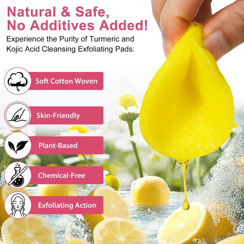 - Convenience Kojic Acid and Turmeric Cleansing Pads: Say goodbye to messy creams or oils - these single-use cleansing pads make it effortless to include turmeric in your daily skincare routine.