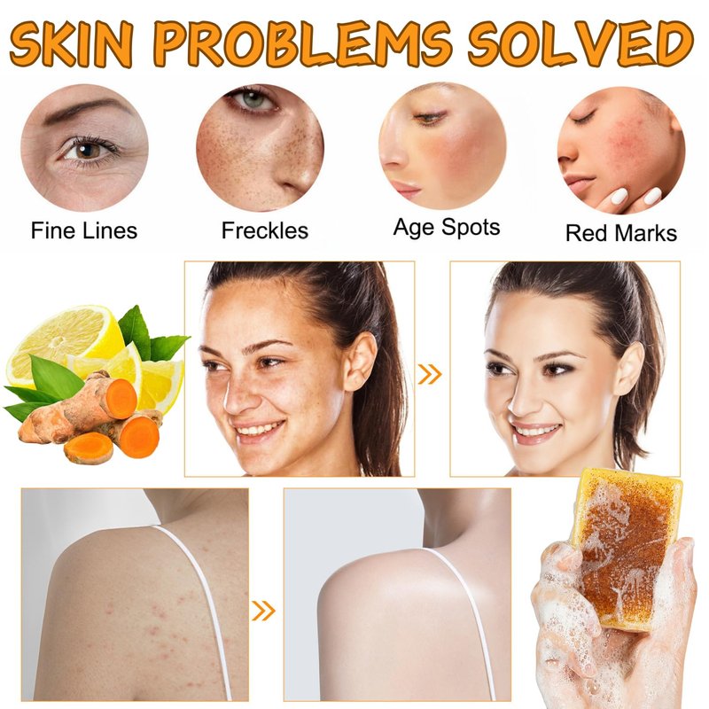 - 【Antioxidant & Moisturzing】 Turmeric and lemon are rich in natural antioxidants that have significant anti-aging benefits; The vitamin C lemon turmeric ko-ji-c ac-id soap for girls work to minimize the appearance of fine lines and wrinkle; This natural tumeric soap ko-ji-c soap helps strengthen the skin's barrier function and locks in precious moisture from loss