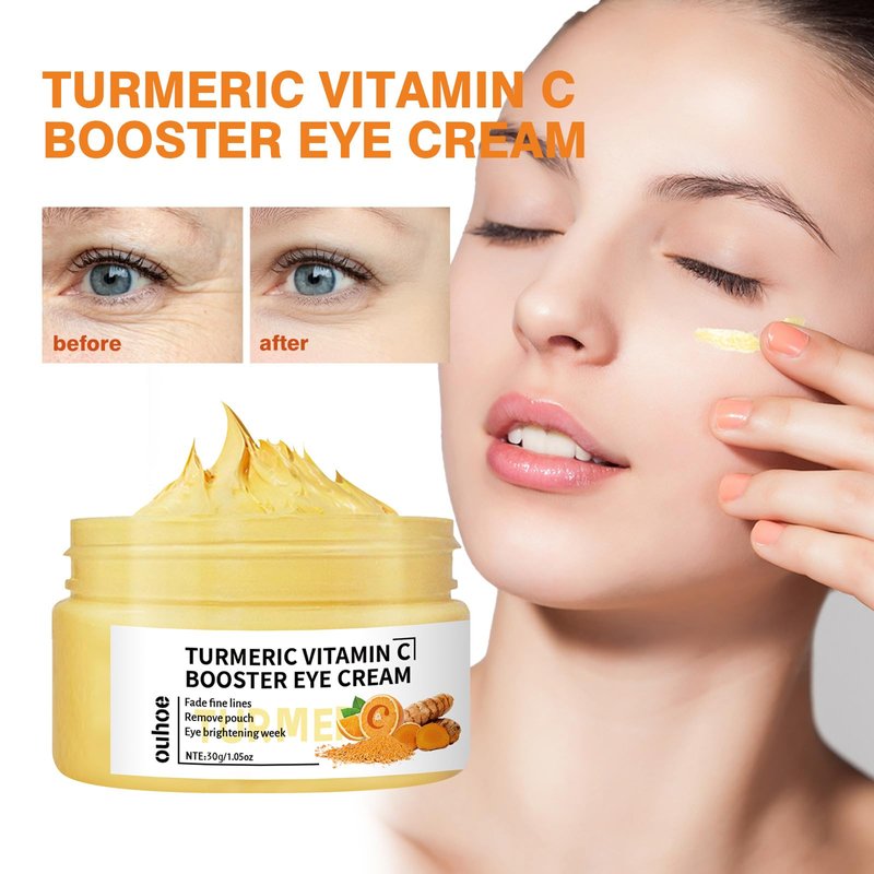 Turmeric + Vitamin C Booster Eye Cream, Brightening and Hydrating Eye Cream, Dark Circle Relief, Elasticity Treatment, Gentle Anti-Aging & Anti-Wrinkle Care