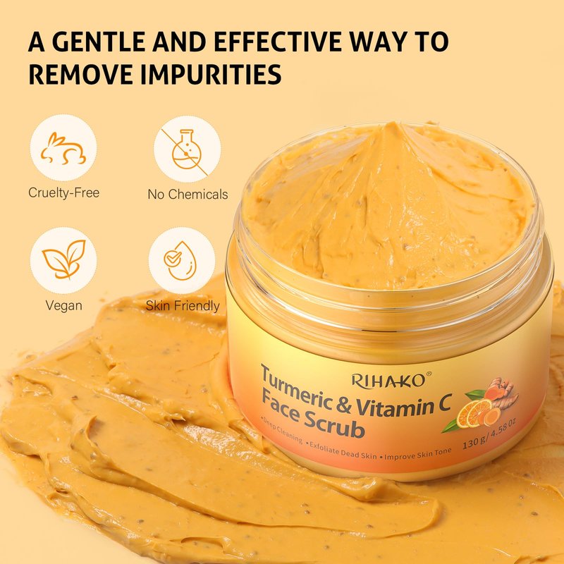 - 【Eliminates Dullness】This scrub combines vitamin C and turmeric, rich in antioxidants, to reduce melanin deposits, stimulate collagen production, even out skin tone, improve dull skin, and restore a youthful glow.