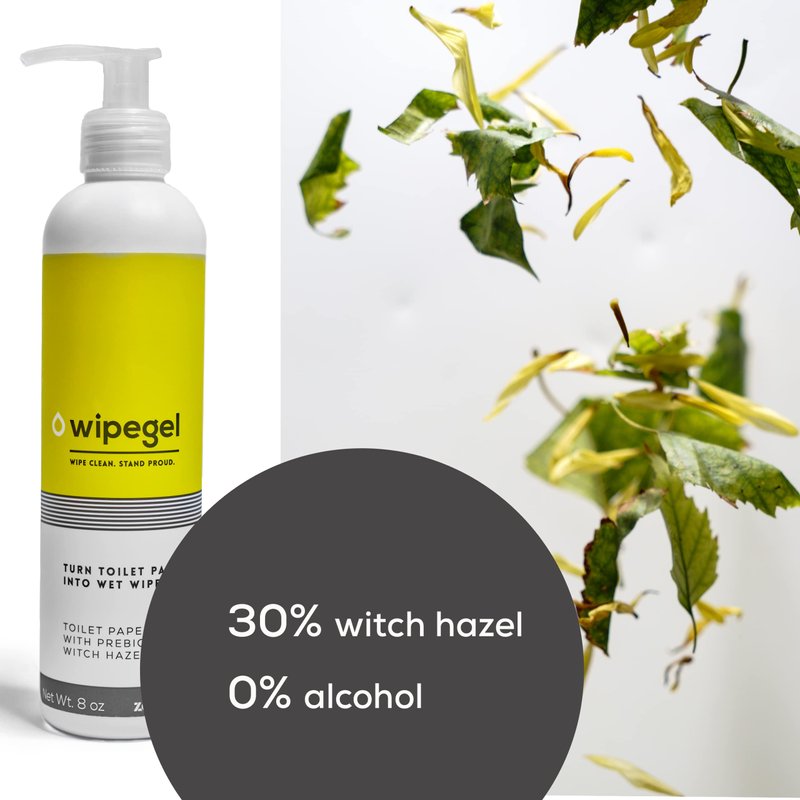 - GREAT VALUE: One bottle of Wipegel makes up to 400 wipes with Witch Hazel and Prebiotics. Main ingredients: Water, 30% Witch Hazel, Prebiotic Blend
