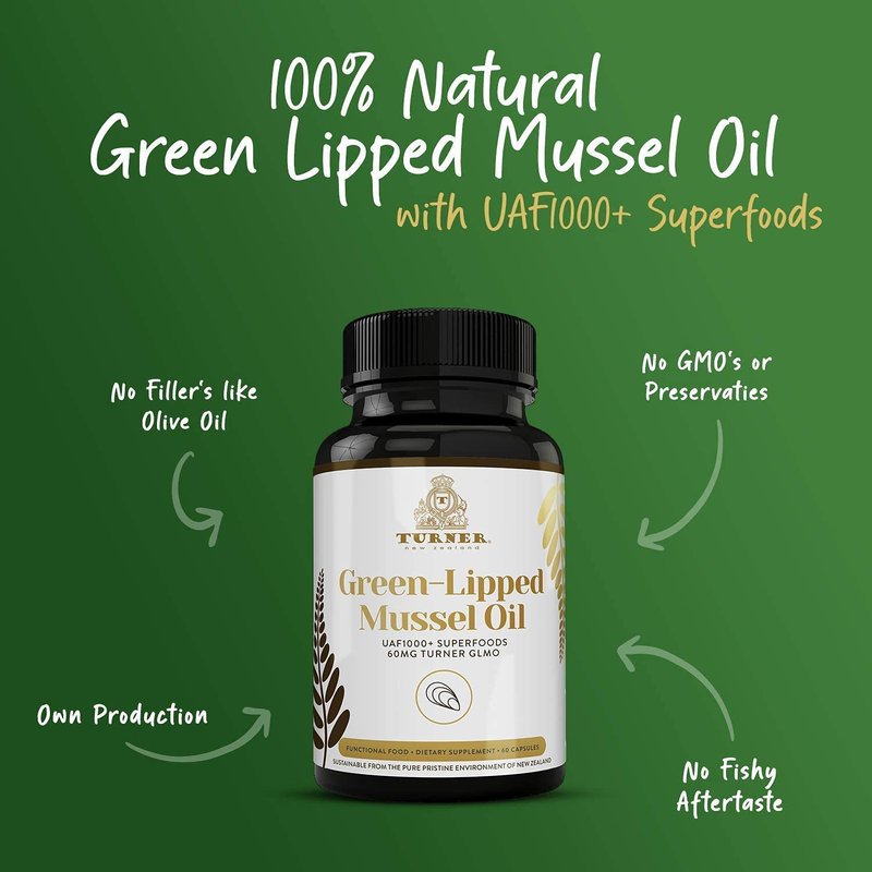 - Experience more than just fish oil with TURNER GLMO. Derived from green-lipped mussels sustainably aquacultured in the pristine waters of New Zealand, our oil extract boasts over 30 free fatty acids, including EPA and DHA, offering a unique and potent source of essential nutrients