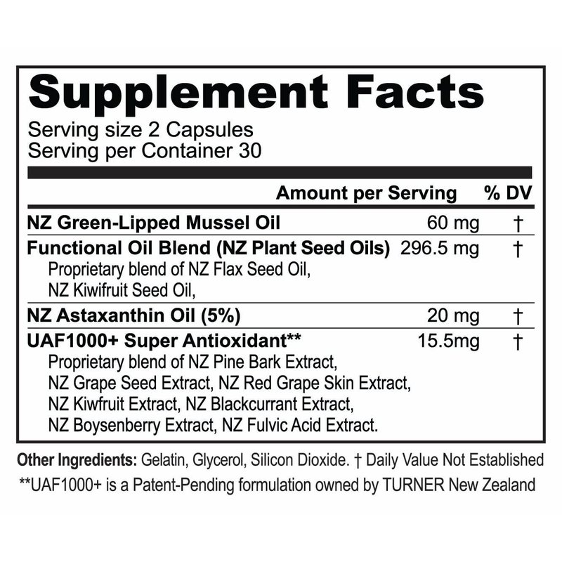 TURNER Omega-3 New Zealand Green Lipped Mussel Oil, 53x Higher Potency with UAF1000+ Super Antioxidant for Superior Joint Comfort & Mobility, No Fishy Aftertaste, 1 Bottle, 60 Softgels