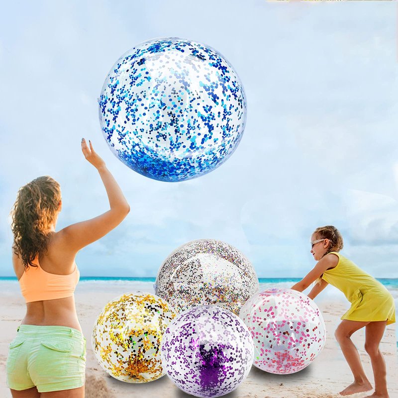 - Perfect Summer Gifts: The inflatable glitter beach ball are filled with blue sequin, and when you move the beach ball the glitter sequin creates changing different effects under the sunlight. It can exercise baby's hands, eyes, brain coordination and cognitive ability. The ball are very pretty and chic, add something different and new to your happy party time, it is a very interesting props.