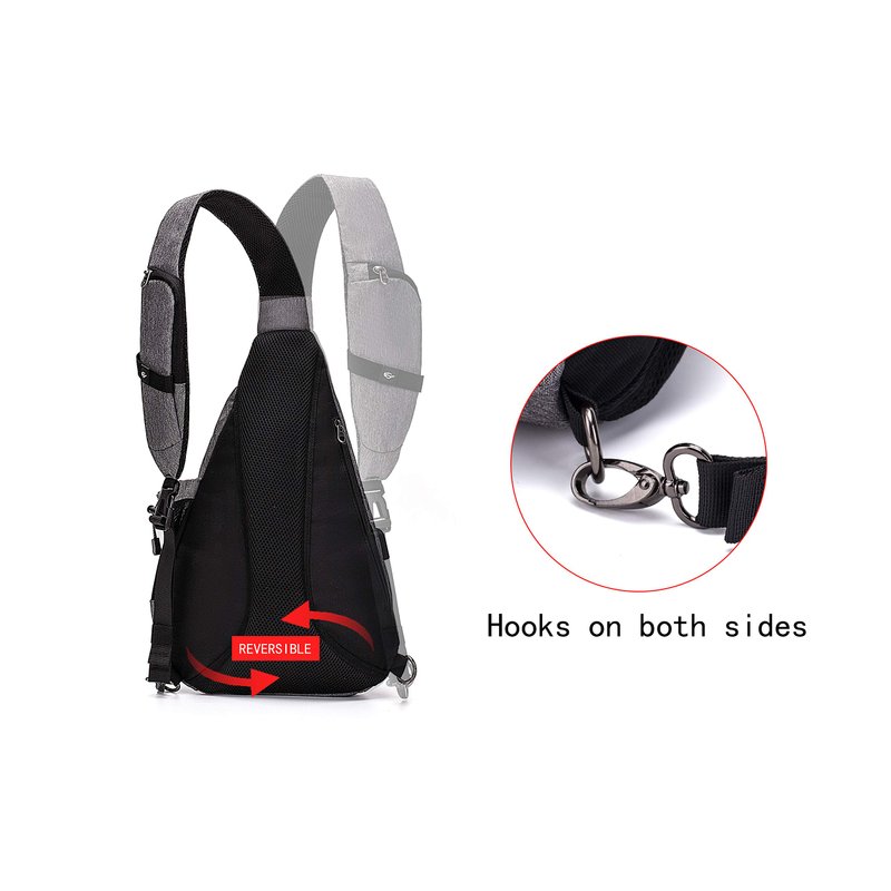 - DIFFERENT WAYS OF WEARING - Wear this sling bag over either shoulder with Reversible Shoulder Strap, or in the front to deter thieves. REFLECTIVE TAPE - Reflective detailing in the bottom of the big pocket for safety for late night using