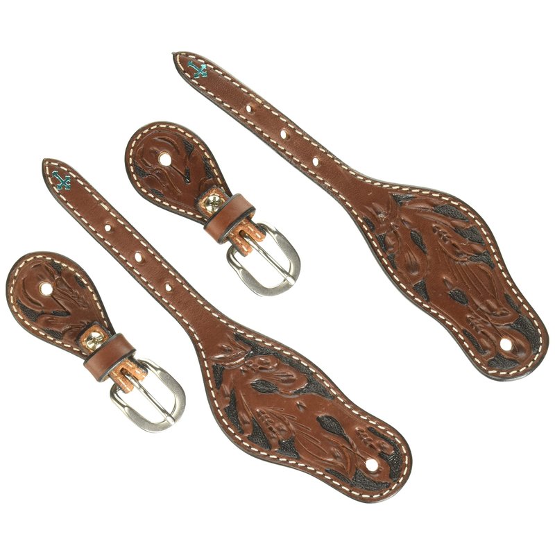 Turquoise Cross Floral Carved Ladies' Spur Straps Chestnut 45-0421