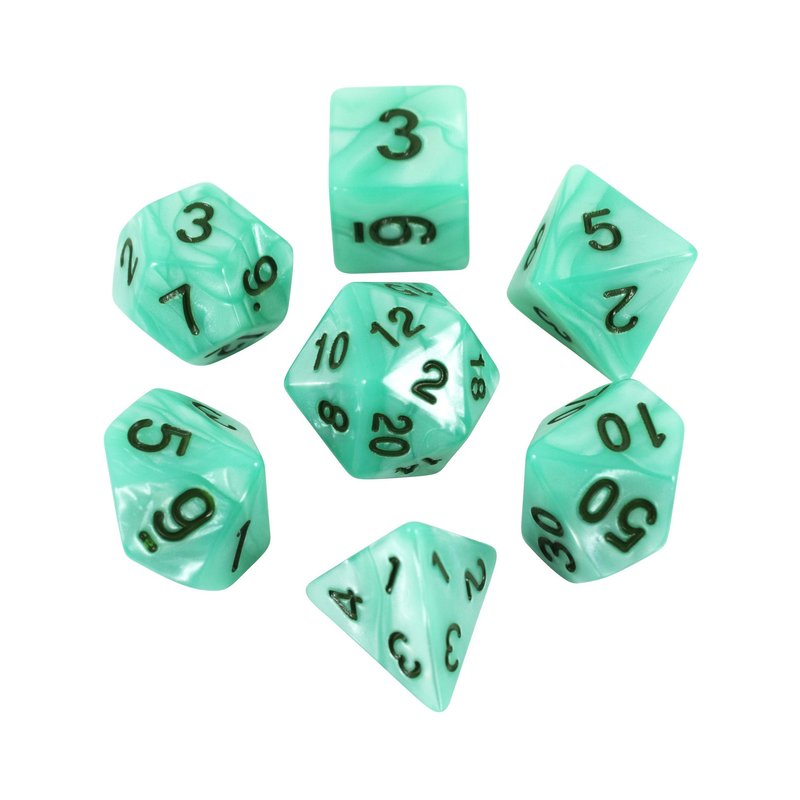 - Beautiful turquoise / teal pearl effect rpg dice set, with dark green numbers - Also available in other colors