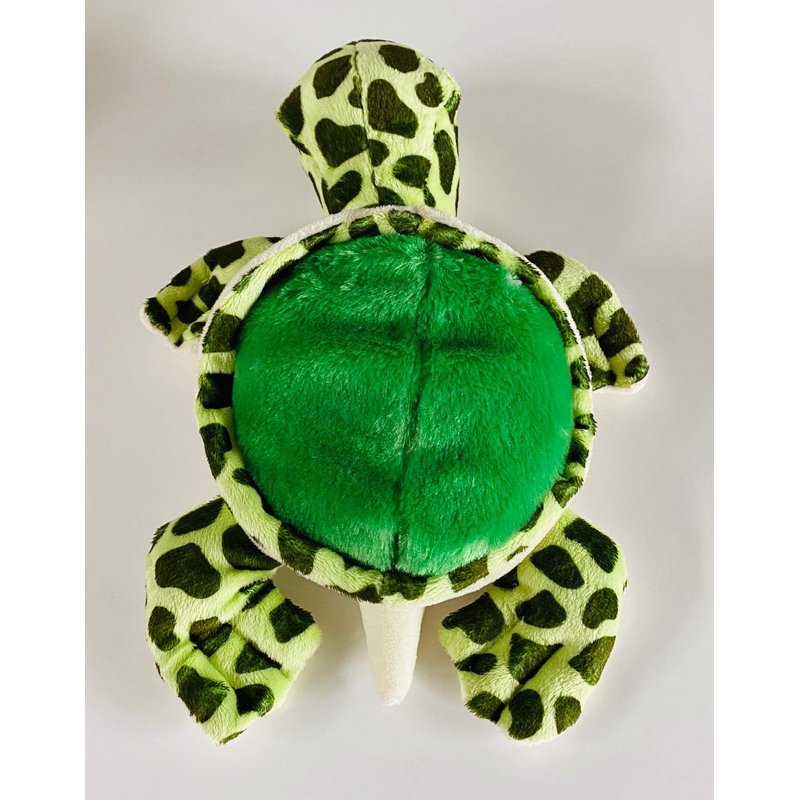Turtle plush dog toy with large squeaker. This adorable, super soft and double-stitched toy is sure to be a favorite of your pup's. Measures approximately 11". This nicely made toy is a play toy, buddy for your dog... not for those that are chewers. Hand wash.