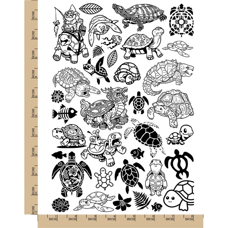 Turtles and Tortoises Temporary Tattoo Water Resistant Fake Body Art Set Collection - Black (One Sheet)