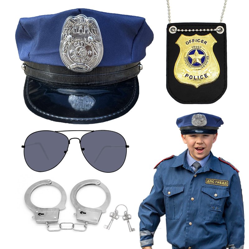 - 【Set Includes】You will receive 4 pieces of kids police officer accessories set, including 1 police hat, 1 pair of handcuffs, 1 pair of black sunglasses, and 1 badge, which can realize your child's dream of playing the police.