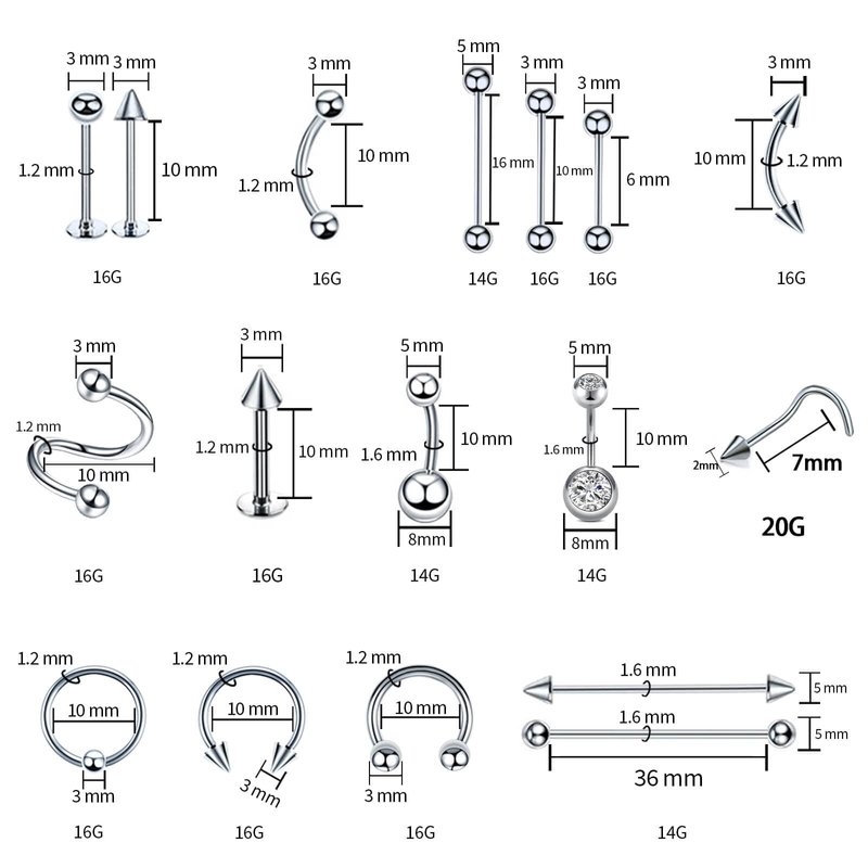 - Comprehensive body piercing set: This piercing kit comes with 153 accessories and piercing jewelry suitable for all parts of the body, including the nose, belly button, nostril, eyebrow, lip, ear, tragus, rook, cartilage, helix, conch, tongue, and more. Whether you're a professional piercer or a beginner, this set can provide you with a wide range of options and possibilities.